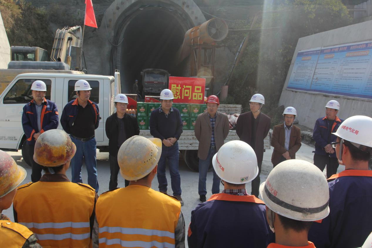 项目经理张文利、总监许光在贯通现场慰问全体参建人员