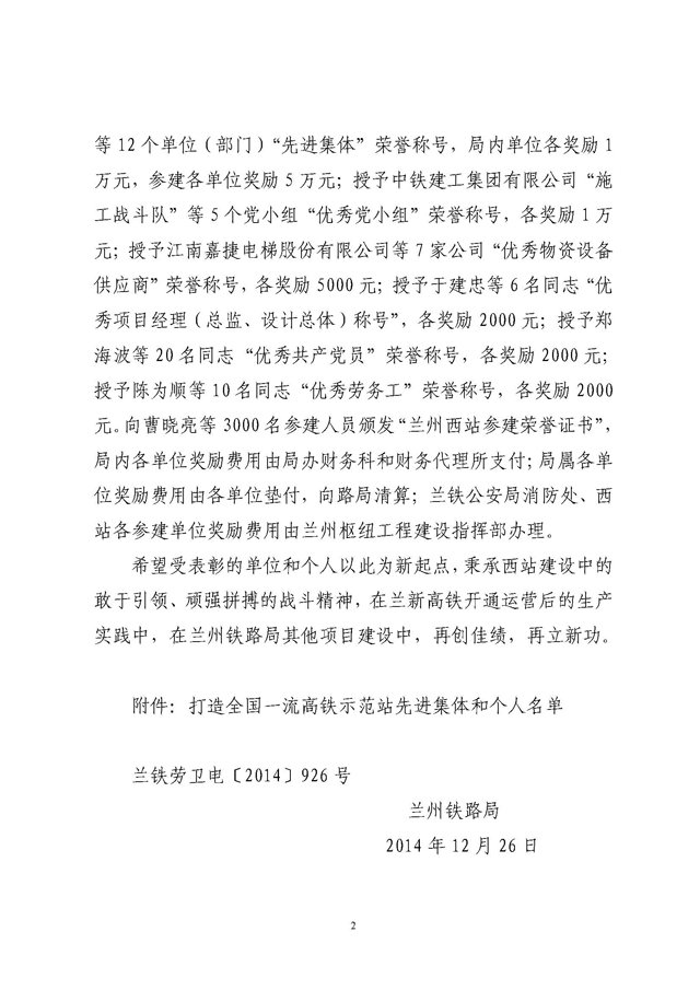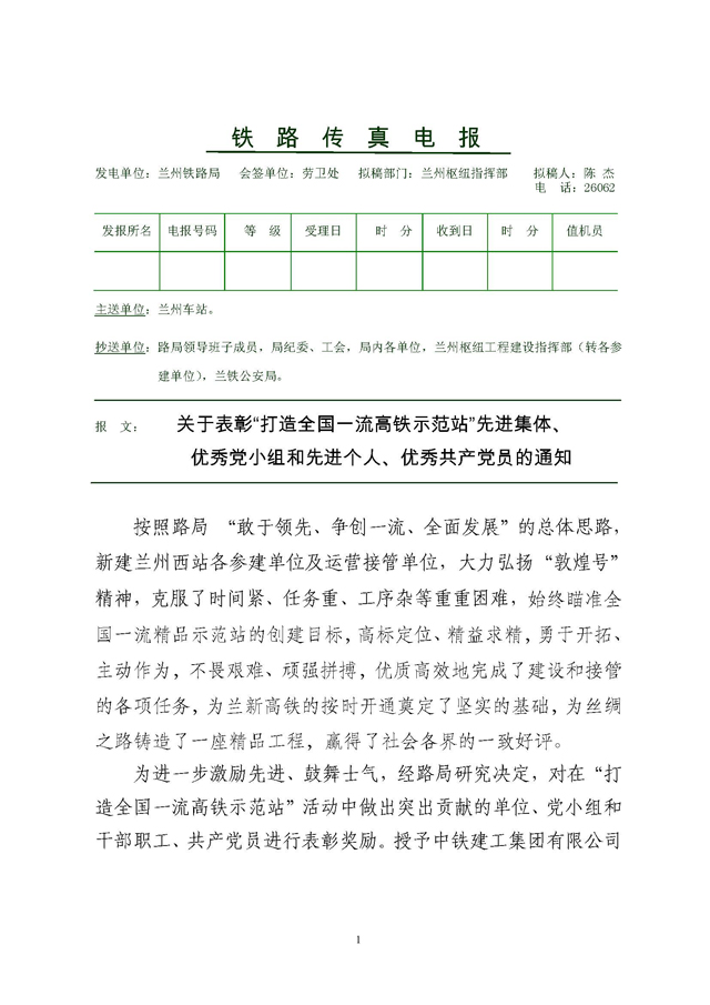 我公司兰州枢纽监理站在兰州铁路局“打造全国一流高铁示范站”活动中获表彰