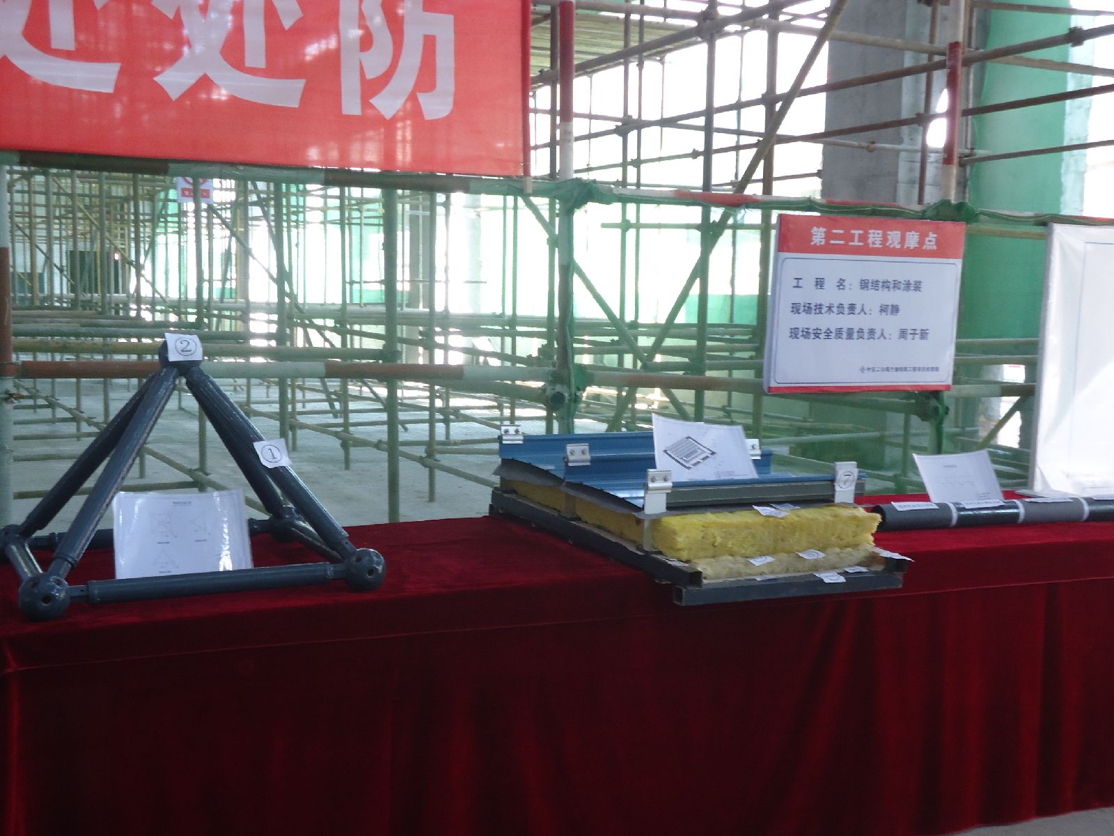 本次观摩会共设6个观摩点:第一观摩点:楼梯踏步和栏杆;第二观摩点:钢结构和涂装(钢网架施工、高空拼装施工、金属屋面安装、防火涂料施工);第三观摩点:站台铺装及雨棚;第四观摩点:地道干挂石材及装饰装修;第五观摩点:出站厅装饰装修和设备安装(铝条板吊顶及花岗岩铺装、电气安装);第六观摩点:外墙装饰装修、玻璃幕墙和门厅立柱。观摩过程中各级领导及各参建单位代表听取了中交二公局现场对陇南车站样板工程施工工序、工艺及控制要点的介绍。各有关领导及参见单位代表对此次观摩工程施工、现场安全文明施工及工程质量情况给予了高度评价与肯定。