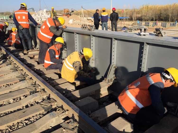 谭家井旅客地道桥24米D型便梁安装施工现场