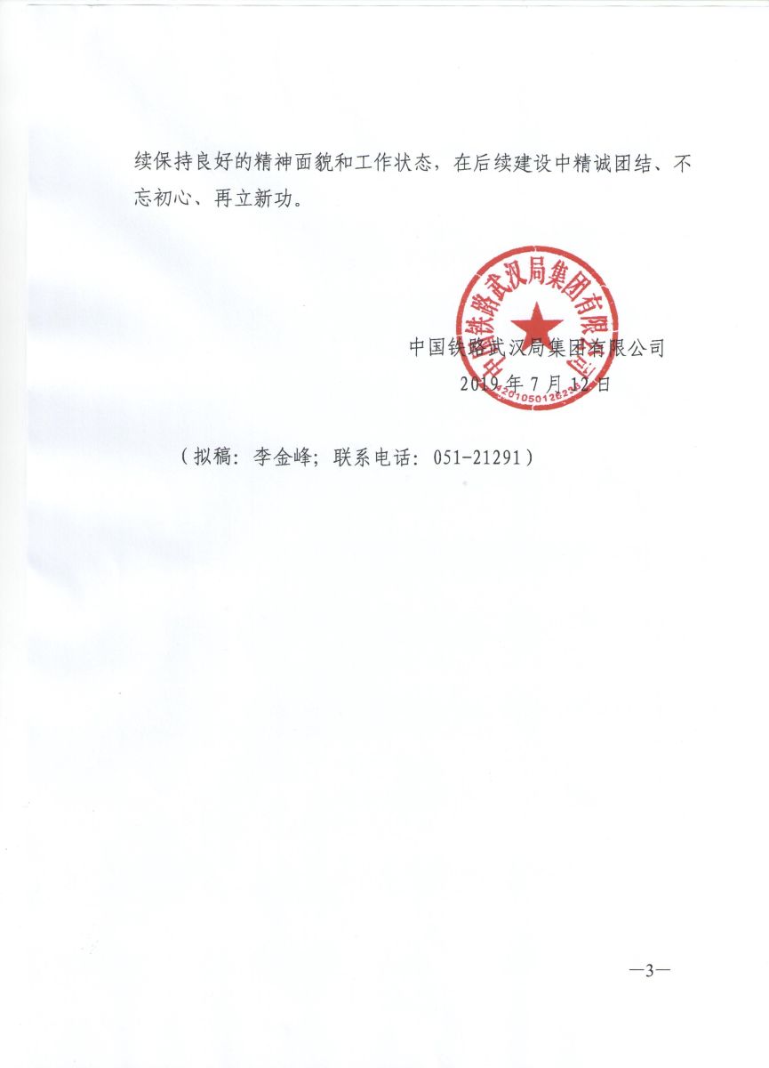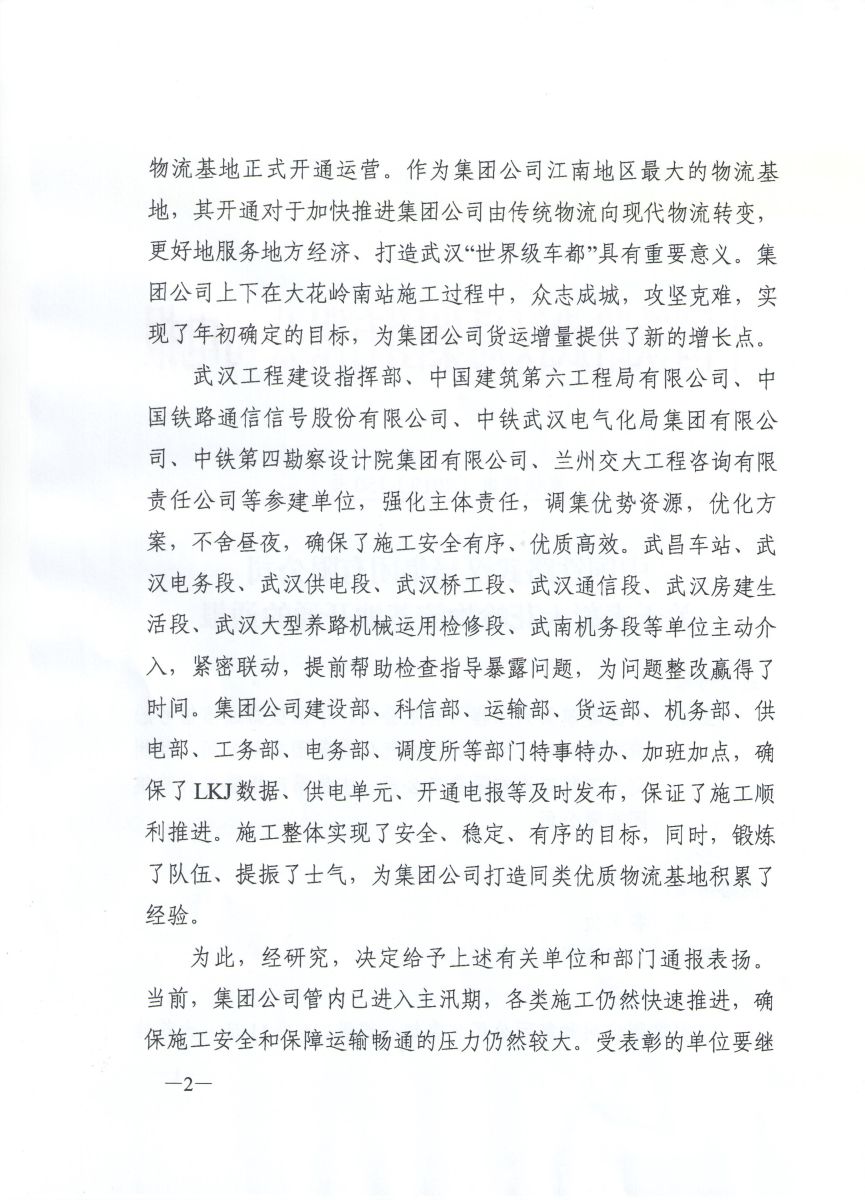 武汉总站获武汉局通报表彰