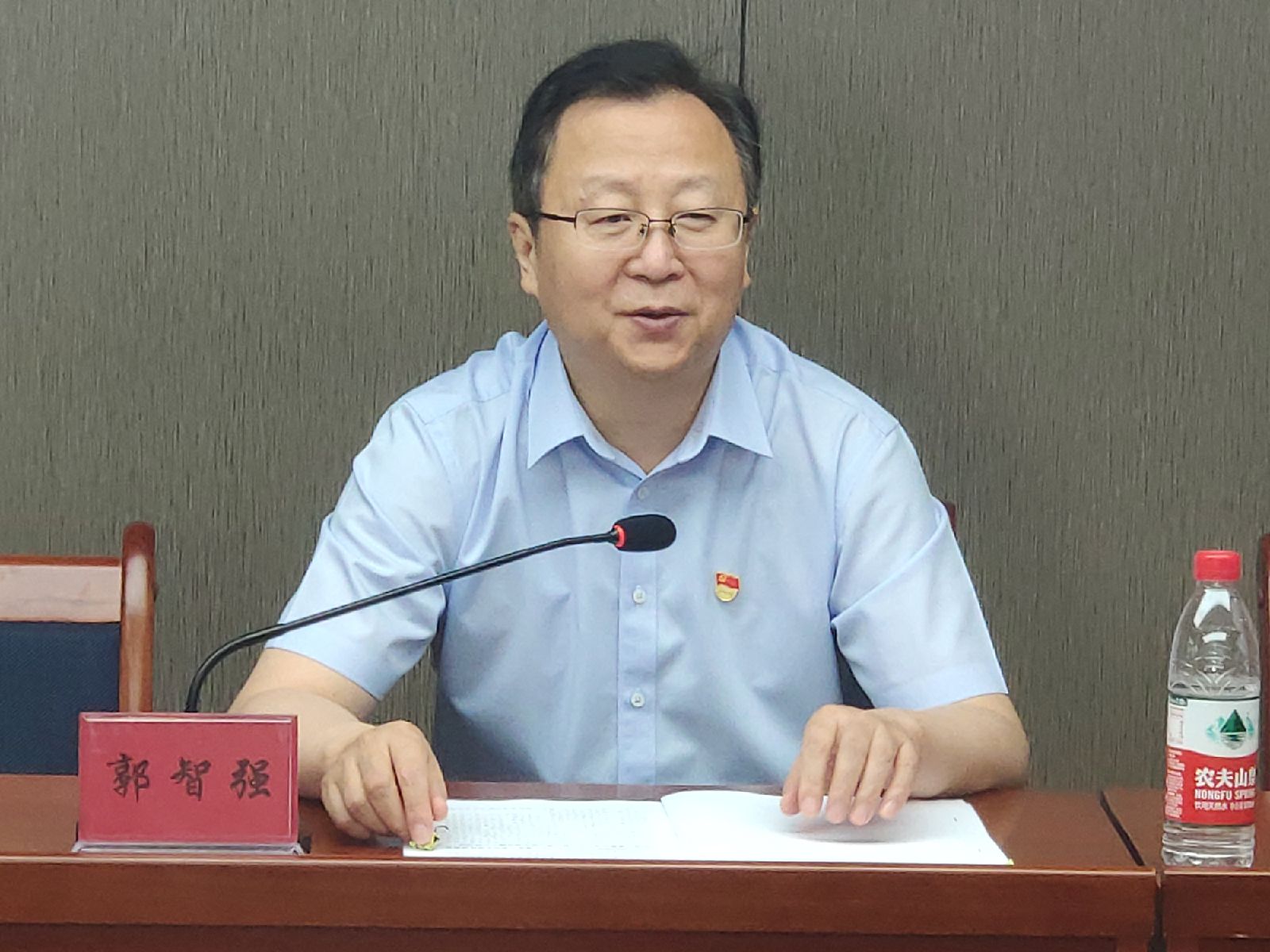 省政府国资委党委委员、副主任郭智强主要从以下七个方面讲述以习近平新时代中国特色社会主义思想为指导推动省属企业党的建设全面进步全面过硬为主题的党课。一、深刻领悟习近平总书记关于国有企业地位作用的重要论述,坚定不移作强做优做大国企业。二、深刻领悟习近平总书记关于国有企业强根固魂的重要论述,毫不动摇坚持党对国有企业的领导。三、深刻领悟习近平总书记关于建设中国特色现代国有企业制度的重要论述,一以贯之推动党的领导融入公司治理。四、深刻领悟习近平总书记关于国有企业领导人员队伍建设的重要论述,从严从实抓好企业领导人员教育管理。五、深刻领悟习近平总书记关于基层党建“三基建设”的重要论述,持之以恒夯实党的基层基础。六、深刻领悟习近平总书记关于国有企业党风廉政建设的重要论述坚定不移推动全面从严治党向纵深发展。七、深刻领悟习近平总书记关于全面依法治国的重要论述,深入扎实抓好省属企业法务队伍建设。