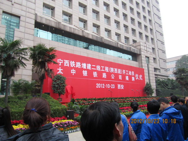 2012年10月23日上午,宁西铁路增建二线工程(陕西段)开工动员暨太中银铁路公司揭牌仪式在西安举行。