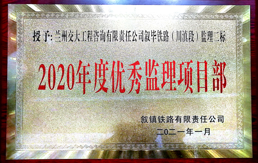 叙毕铁路监理部喜获2020年度优秀监理项目部