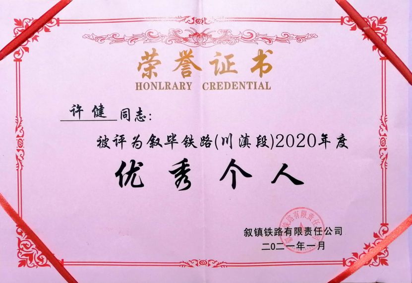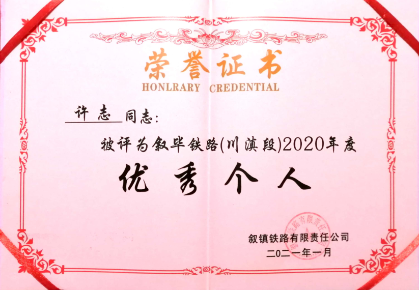 2021年1月28日15时,在叙镇铁路公司会议室召开的叙毕铁路(川滇段)2021年建设工作会暨1月份生产例会上,叙镇铁路公司对叙毕铁路(川滇段)参建单位的先进集体和先进个人进行了表彰。授予澳门在线威尼斯官方下载叙毕铁路监理项目部为2020年度叙毕铁路(川滇段)优秀监理项目部,许志、徐天广、许健三名同志为2020年度叙毕铁路(川滇段)优秀个人。