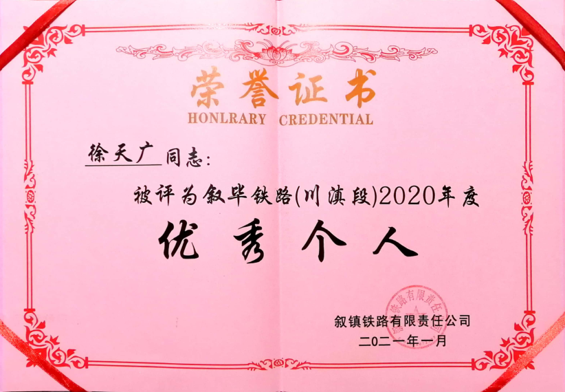 2020年是叙毕铁路(川滇段)工程建设持续攻坚之年,各参建单位根据叙镇铁路公司的总体要求和部署,有序有效、协同推进,较好地完成了年度总体建设目标。投资计划超额完成,安全环保职业健康“三个零”管理目标顺利实现,工序质量受控,实体质量缺陷数量较大幅度下降。在建设过程中,涌现了一批先进集体和优秀个人,为表彰先进,树立典型,叙镇铁路公司决定对叙毕铁路(川滇段)先进集体和先进个人进行表彰。希望受表彰的先进集体和个人珍惜荣誉,再接再厉,锐意进取,在项目后续建设过程中再创佳绩。同时要求全体参建人员以受表彰的先进集体和个人为榜样,凝心聚力、真抓实干,为叙毕铁路项目建设有序稳步推进做出更大的贡献。