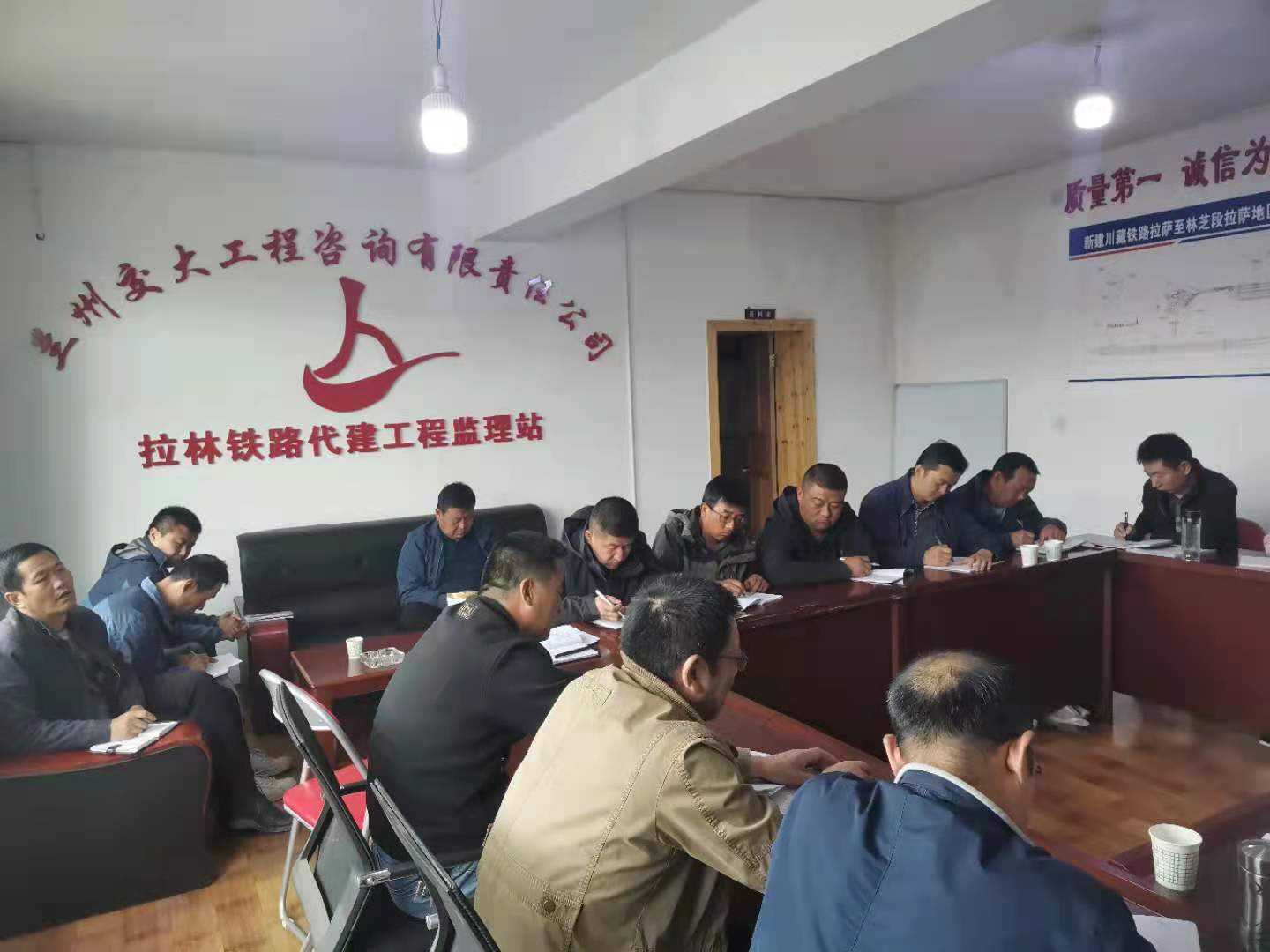5月11日上午,董事长刘凤奎、副总经理白家风组织代建项目全体员工为拉林铁路6.30顺利开通召开专题会议。会上,刘董事长再次强调代建项目一线员工在后续工作中要继续克服高原困难,坚守一线,恪尽职守,把好安全、质量关,确保拉林铁路高标准、高质量按节点开通运营,为中国共产党建党100周年、西藏自治区成立70周年献礼。